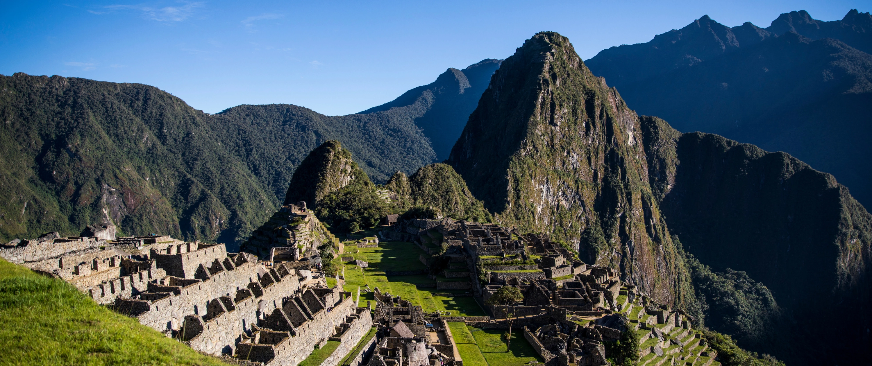Machu Picchu sits on a saddle ridge between the peaks of Machu Picchu and Huayna Picchu