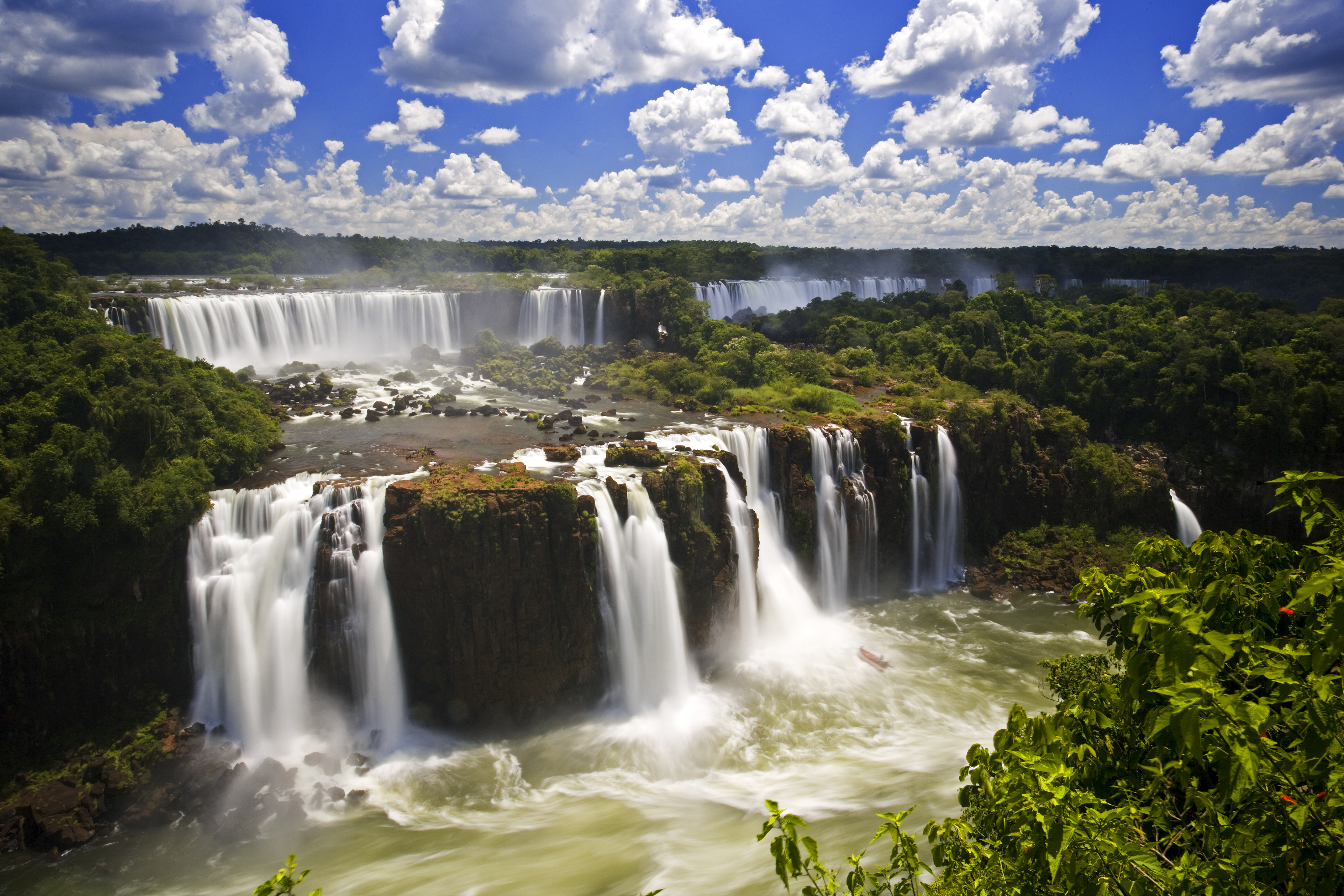 Iguazu Falls are on the border of Argentina and Brazil.